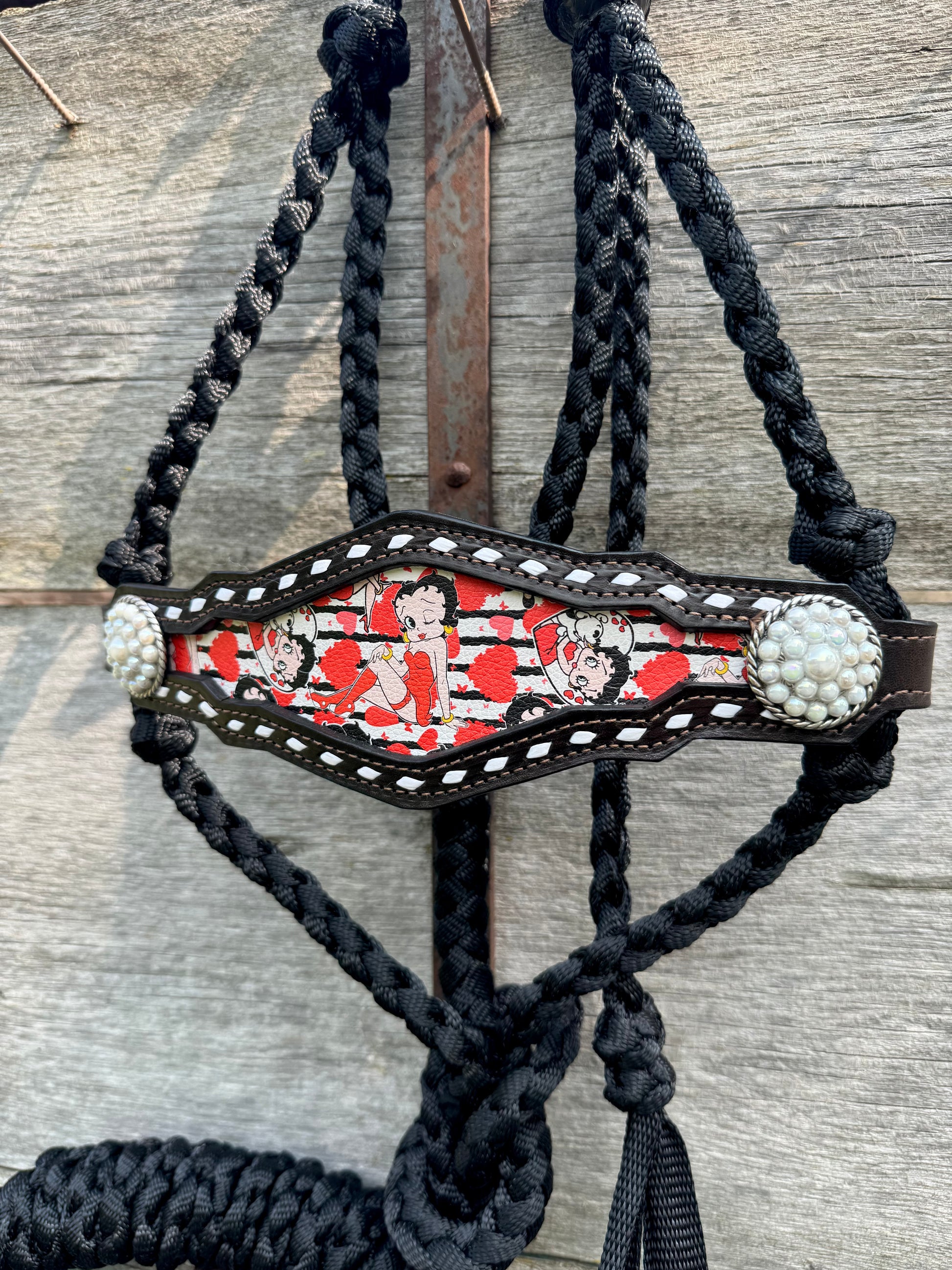 Sized to fit an average quarter horse. Comes with matching lead rope