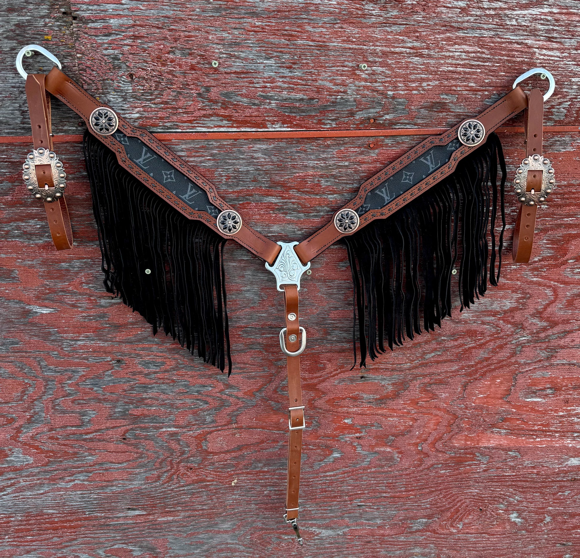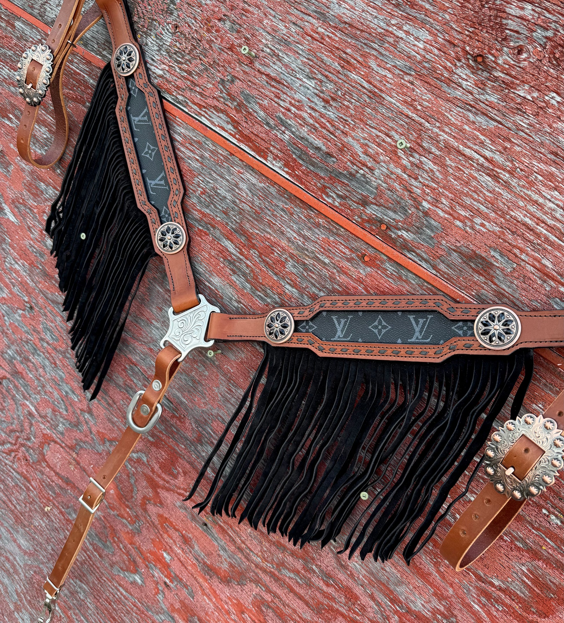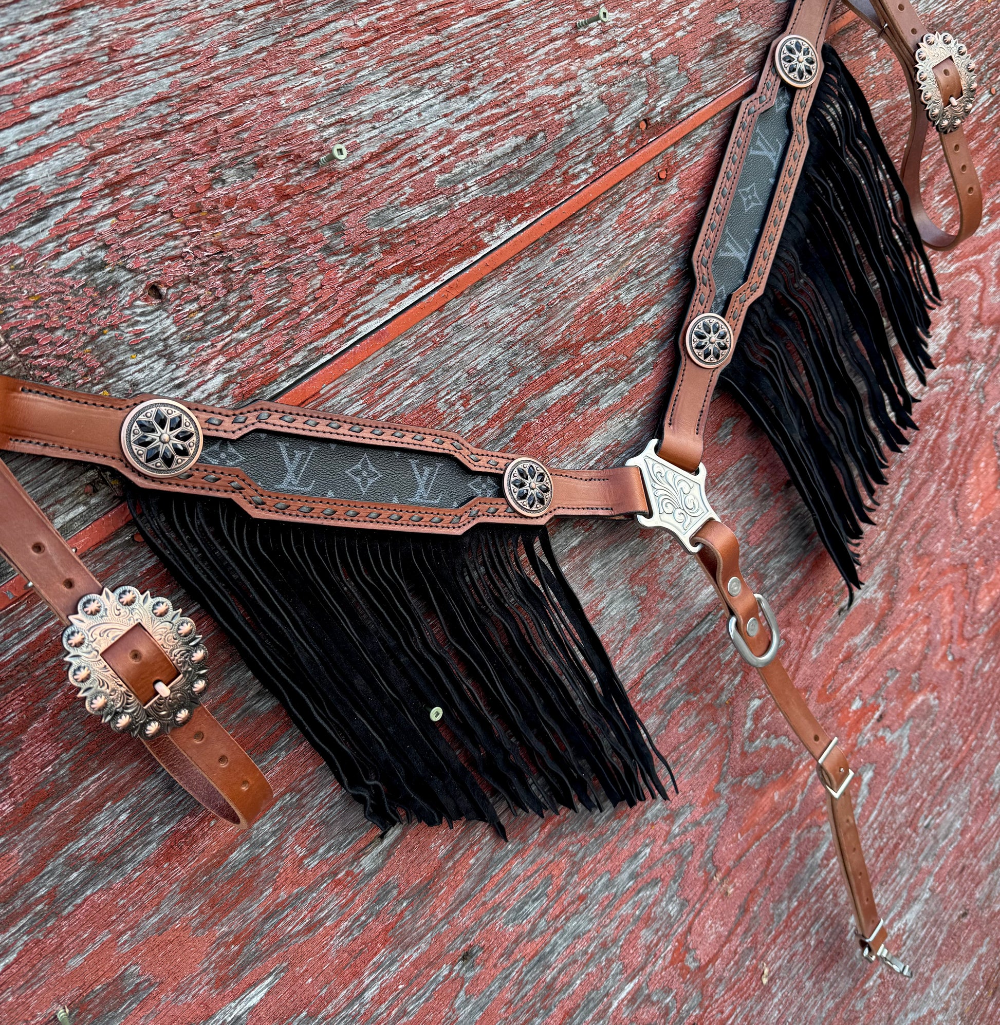 Sized to fit an average quarter horse. Made with grade 1 bridle leather backed with grade 1 Latigo