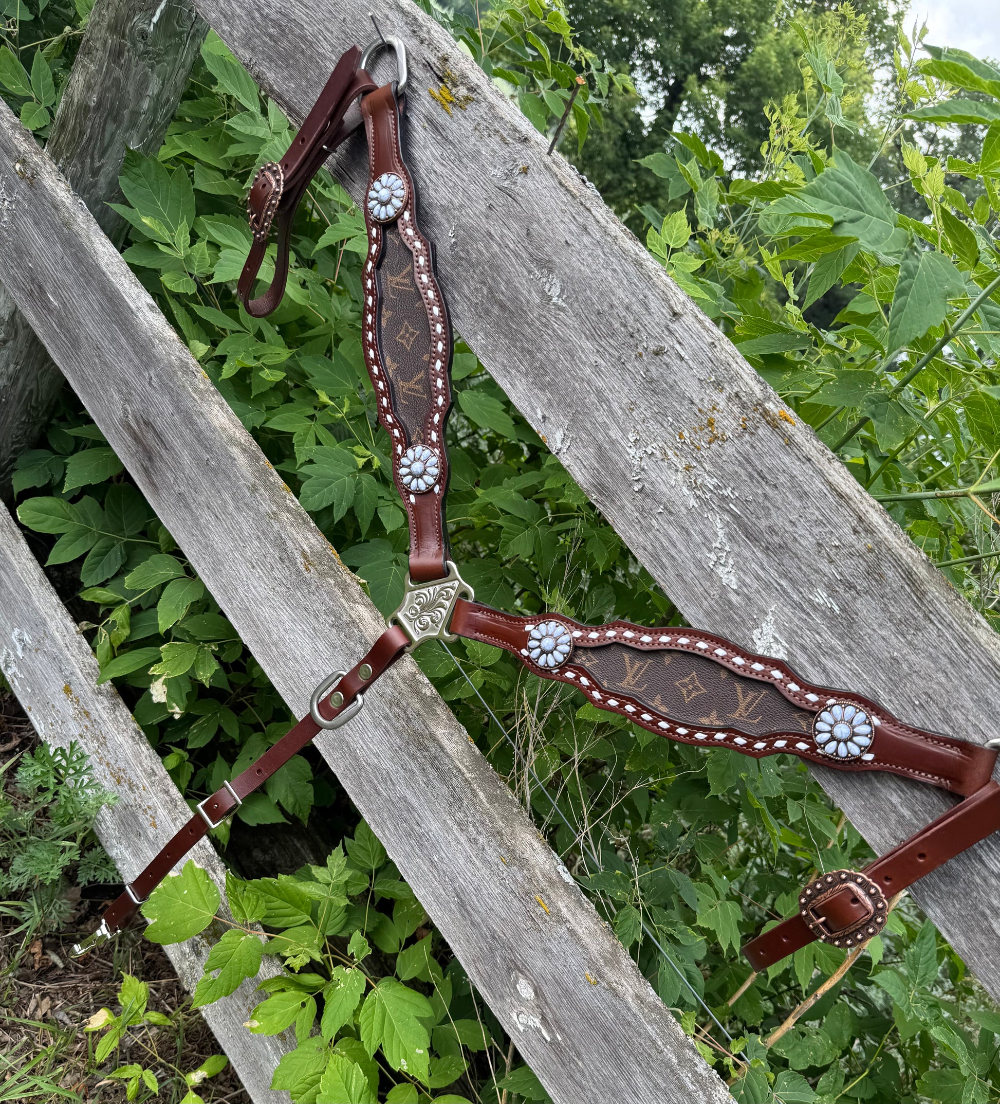 Sized to fit an average quarter horse. Made with grade 1 bridle leather backed with grade 1 Latigo leather.