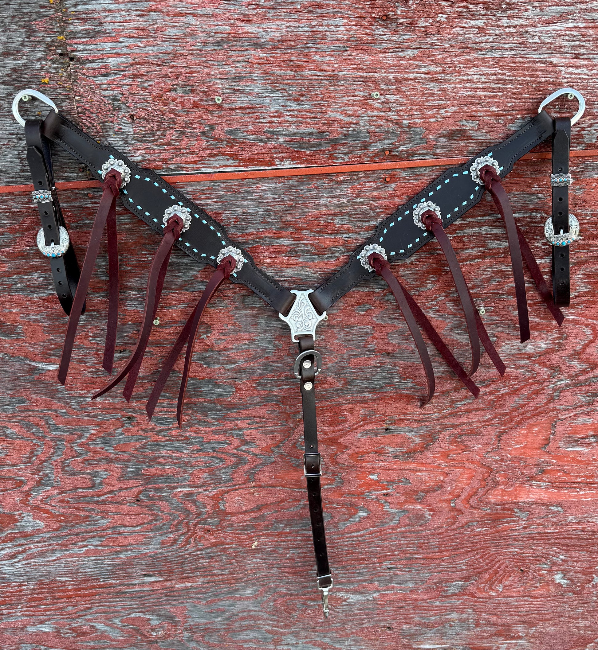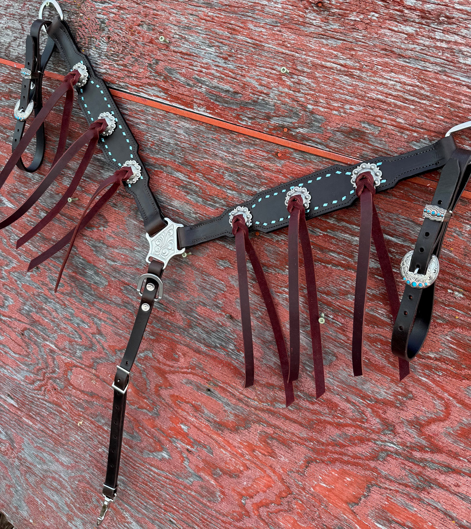 Sized to fit an average quarter horse. Made with grade 1 bridle leather backed with grade 1 Latigo leather