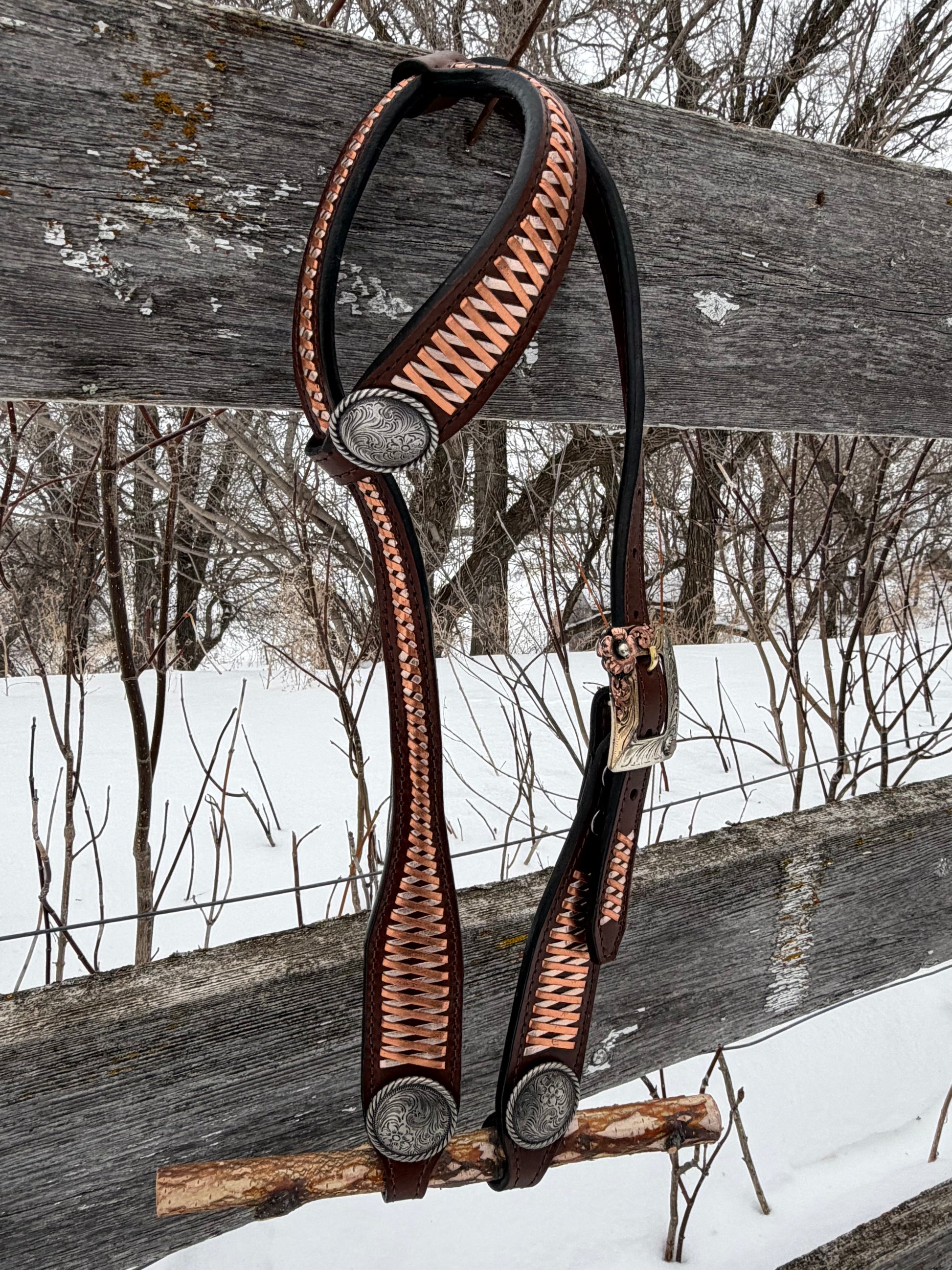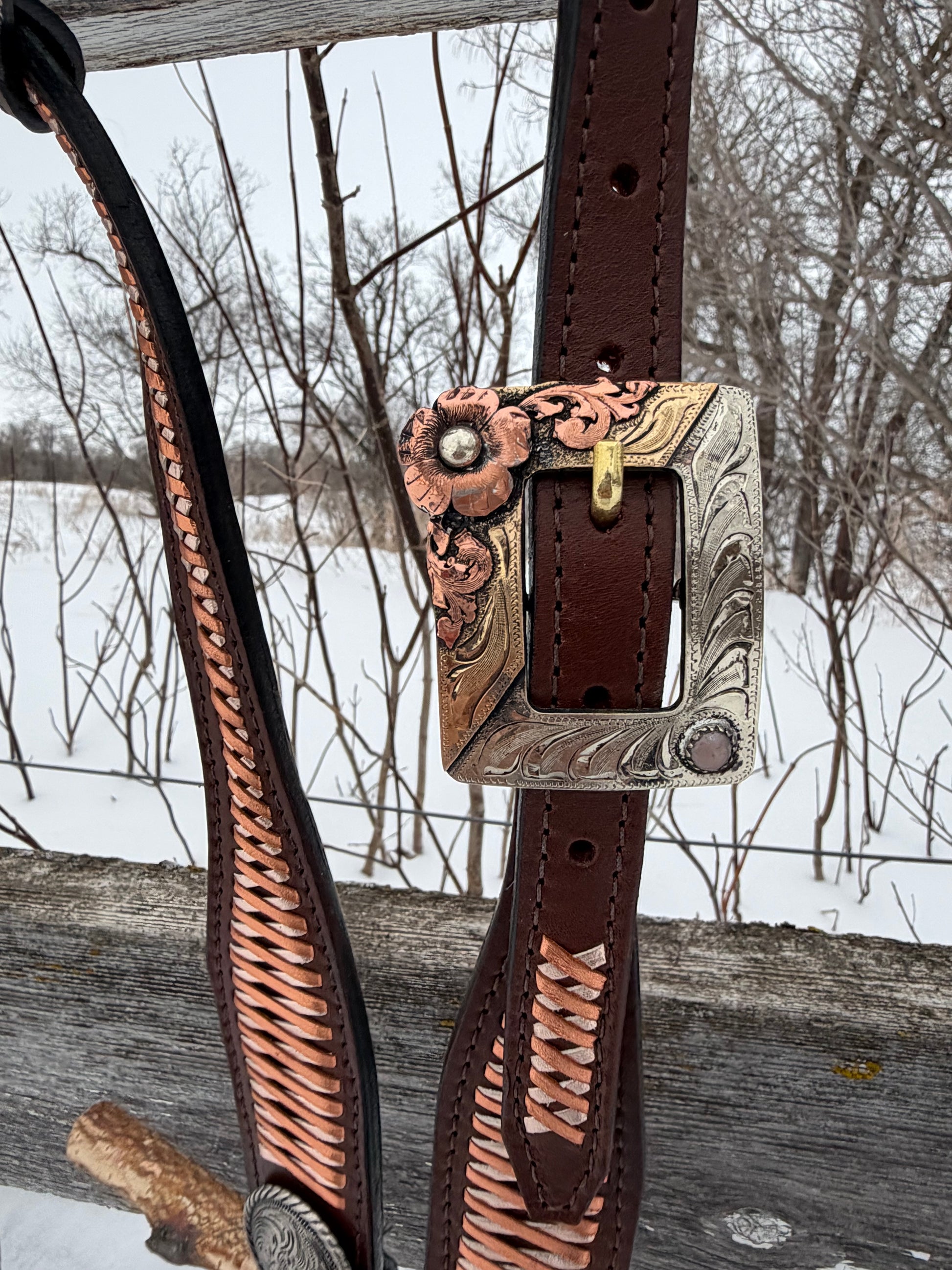 Made with grade 1 bridle leather. Buckle made by The Rowdy rose. Measures 35"-41" with a 10" cheek!
